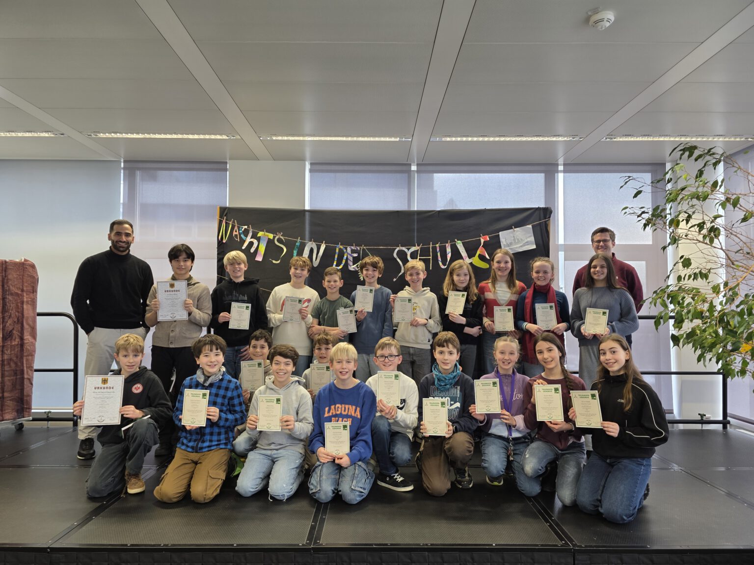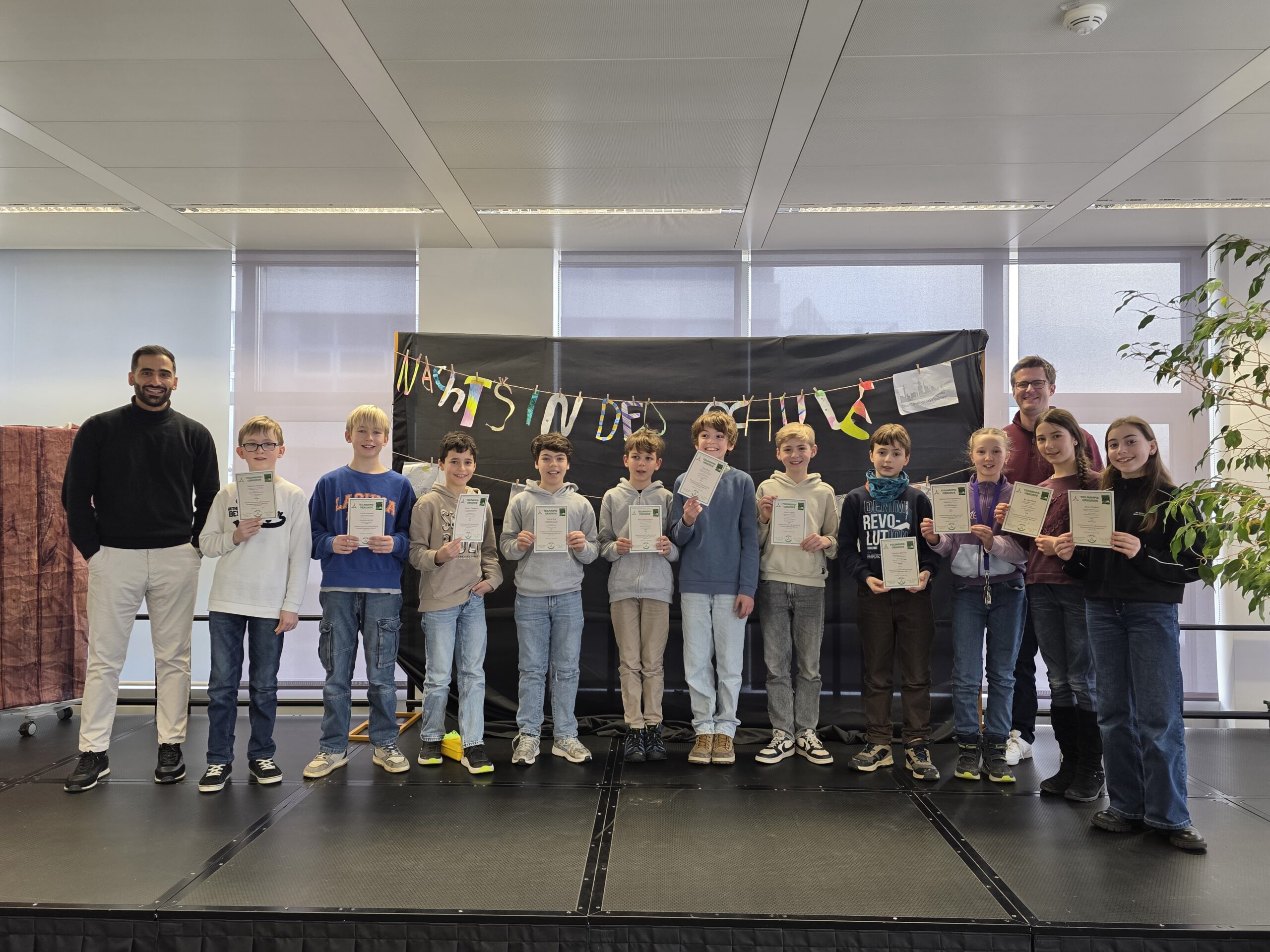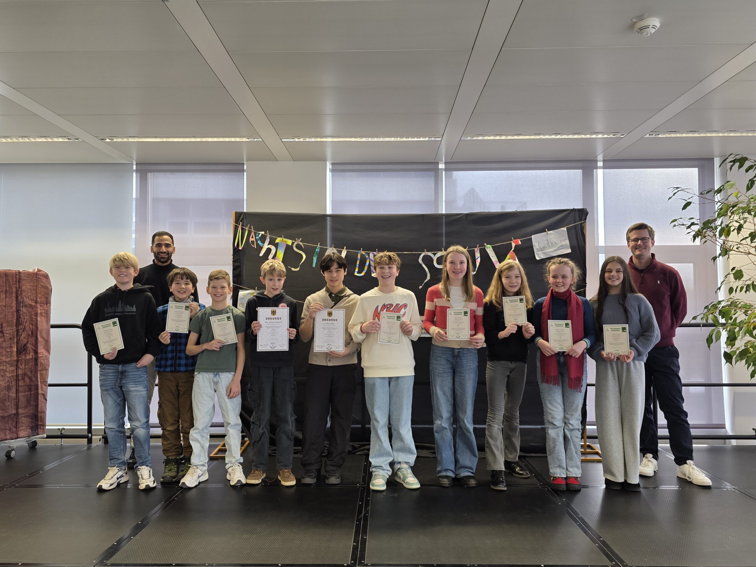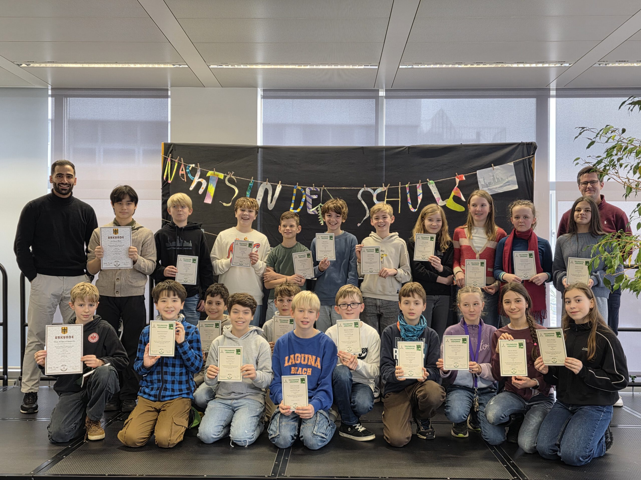 In Jahrgangsstufe 5 konkurrierten hessenweit 203 Teams. Besonders erfreulich waren die Ergebnisse von Die Mathastischen 3 (Klara, Aleksandra, Anna) mit einem starken Platz 24 und Stadtgymnasium 1 (Julius, Timur), die Rang 23 erzielten. Noch besser schnitten Joshua, Emil und Nino als Stadtgymnasium 2 mit Platz 8 sowie Mikhail, Thadeus und Nathan als Stadtgymnasium 2000 mit Platz 7 ab.